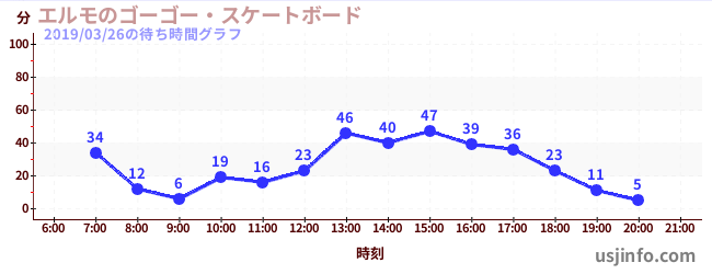 • エルモのゴーゴー・スケートボード$B$N(B2019年03月26日の待ち時間