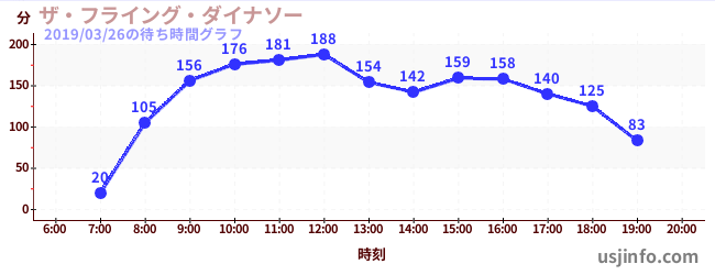 • ザ・フライング・ダイナソー$B$N(B2019年03月26日の待ち時間