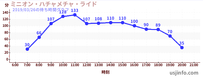 • ミニオン・ハチャメチャ・ライド$B$N(B2019年03月26日の待ち時間
