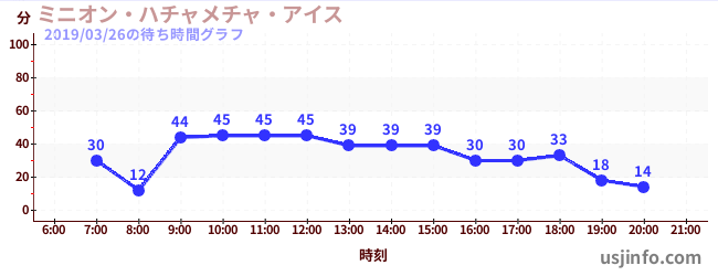 • ミニオン・ハチャメチャ・アイス$B$N(B2019年03月26日の待ち時間