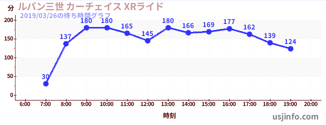• ルパン三世 カーチェイス XRライド$B$N(B2019年03月26日の待ち時間