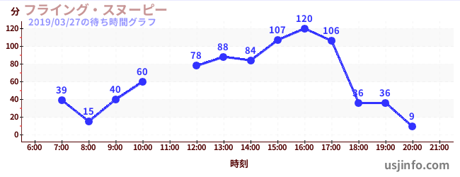 • フライング・スヌーピー$B$N(B2019年03月27日の待ち時間