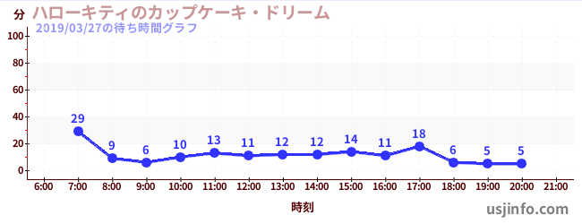• ハローキティのカップケーキ・ドリーム$B$N(B2019年03月27日の待ち時間