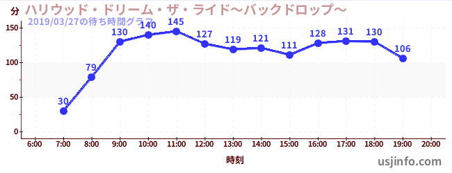 • ハリウッド・ドリーム・ザ・ライド〜バックドロップ〜$B$N(B2019年03月27日の待ち時間