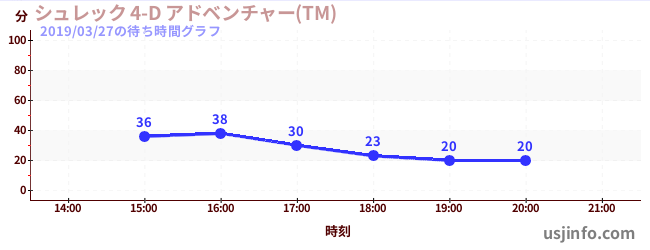 • シュレック 4-D アドベンチャー(TM)$B$N(B2019年03月27日の待ち時間