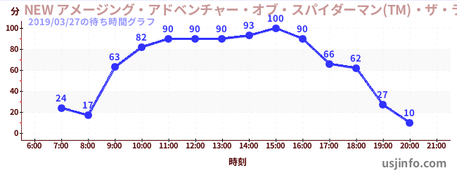 • NEW アメージング・アドベンチャー・オブ・スパイダーマン(TM)・ザ・ライド 4K3D$B$N(B2019年03月27日の待ち時間