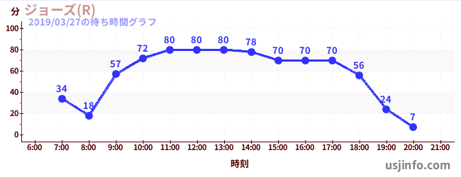• ジョーズ(R)$B$N(B2019年03月27日の待ち時間