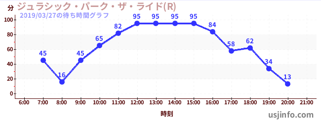 • ジュラシック・パーク・ザ・ライド(R)$B$N(B2019年03月27日の待ち時間