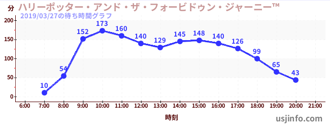 • ハリーポッター・アンド・ザ・フォービドゥン・ジャーニー™$B$N(B2019年03月27日の待ち時間