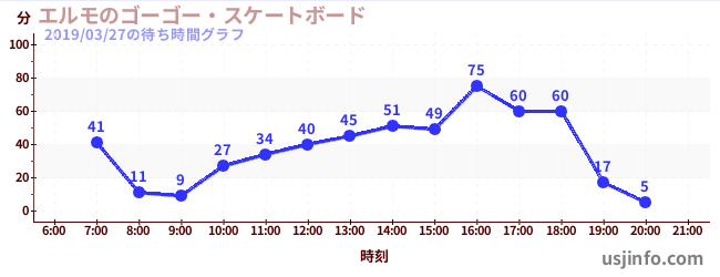 • エルモのゴーゴー・スケートボード$B$N(B2019年03月27日の待ち時間