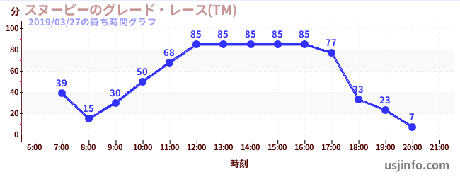 • スヌーピーのグレード・レース(TM)$B$N(B2019年03月27日の待ち時間