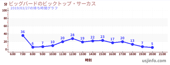 • ビッグバードのビックトップ・サーカス$B$N(B2019年03月27日の待ち時間