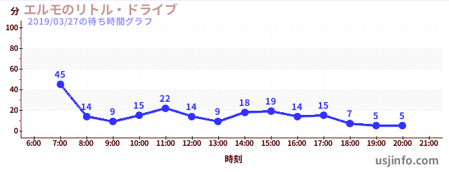 • エルモのリトル・ドライブ$B$N(B2019年03月27日の待ち時間