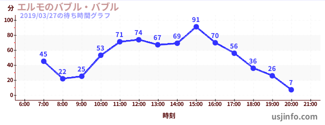 • エルモのバブル・バブル$B$N(B2019年03月27日の待ち時間
