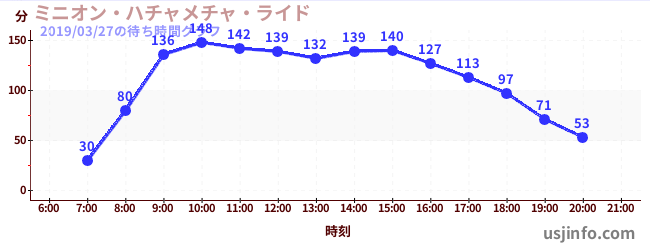 • ミニオン・ハチャメチャ・ライド$B$N(B2019年03月27日の待ち時間
