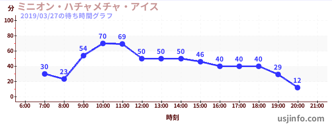 • ミニオン・ハチャメチャ・アイス$B$N(B2019年03月27日の待ち時間