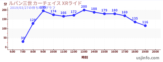 • ルパン三世 カーチェイス XRライド$B$N(B2019年03月27日の待ち時間