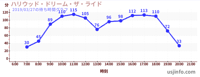 • ハリウッド・ドリーム・ザ・ライド$B$N(B2019年03月27日の待ち時間