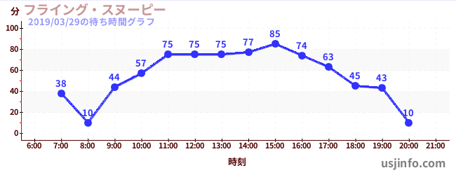 • フライング・スヌーピー$B$N(B2019年03月29日の待ち時間