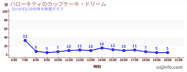 • ハローキティのカップケーキ・ドリーム$B$N(B2019年03月29日の待ち時間