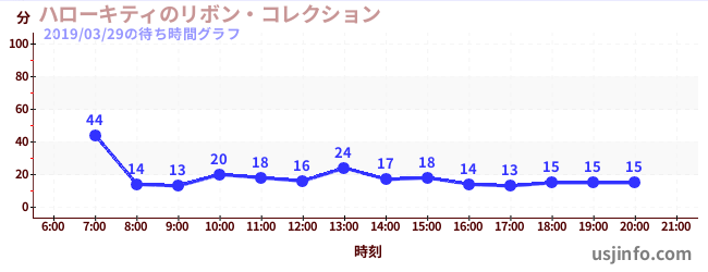 • ハローキティのリボン・コレクション$B$N(B2019年03月29日の待ち時間