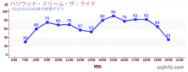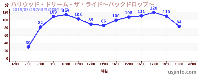 • ハリウッド・ドリーム・ザ・ライド$B$N(B2019年03月29日の待ち時間