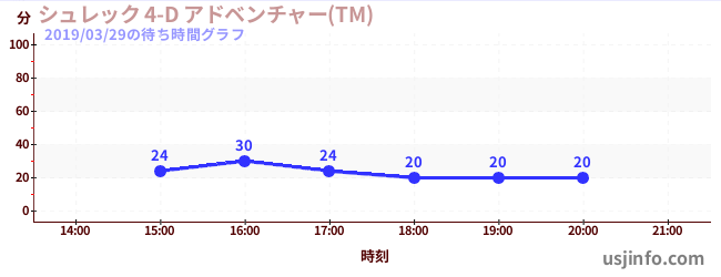 • シュレック 4-D アドベンチャー(TM)$B$N(B2019年03月29日の待ち時間