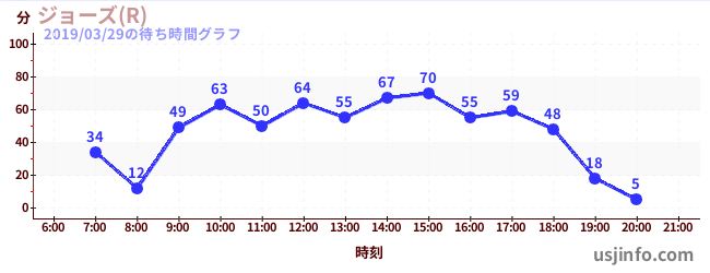 • ジョーズ(R)$B$N(B2019年03月29日の待ち時間