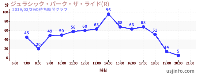 • ジュラシック・パーク・ザ・ライド(R)$B$N(B2019年03月29日の待ち時間