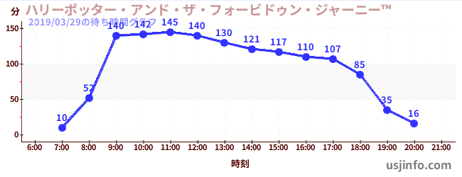 • ハリーポッター・アンド・ザ・フォービドゥン・ジャーニー™$B$N(B2019年03月29日の待ち時間