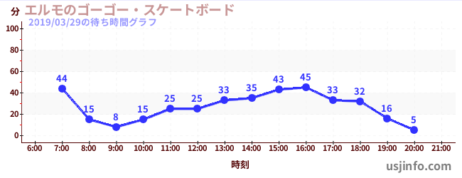 • エルモのゴーゴー・スケートボード$B$N(B2019年03月29日の待ち時間