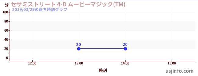 • セサミストリート 4-D ムービーマジック(TM)$B$N(B2019年03月29日の待ち時間