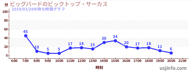 • ビッグバードのビックトップ・サーカス$B$N(B2019年03月29日の待ち時間