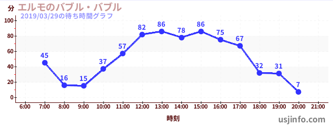 • エルモのバブル・バブル$B$N(B2019年03月29日の待ち時間