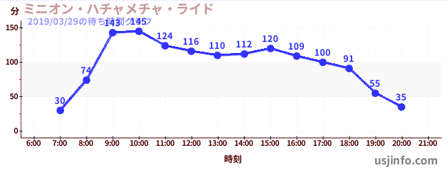 • ミニオン・ハチャメチャ・ライド$B$N(B2019年03月29日の待ち時間