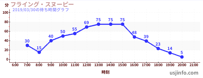• フライング・スヌーピー$B$N(B2019年03月30日の待ち時間
