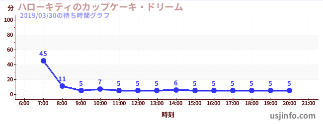 • ハローキティのカップケーキ・ドリーム$B$N(B2019年03月30日の待ち時間