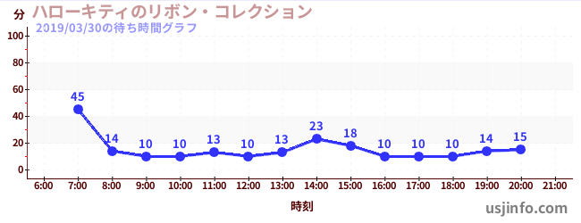 • ハローキティのリボン・コレクション$B$N(B2019年03月30日の待ち時間