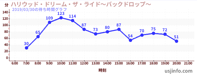 • ハリウッド・ドリーム・ザ・ライド〜バックドロップ〜$B$N(B2019年03月30日の待ち時間
