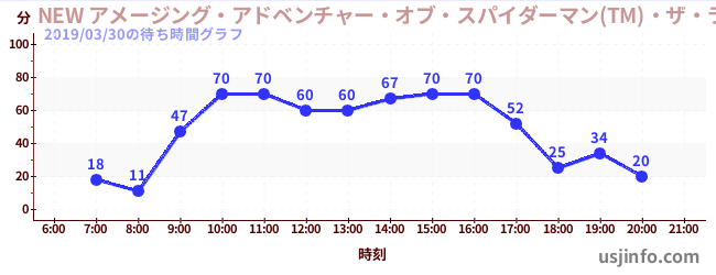 • NEW アメージング・アドベンチャー・オブ・スパイダーマン(TM)・ザ・ライド 4K3D$B$N(B2019年03月30日の待ち時間