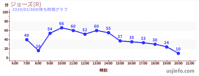 • ジョーズ(R)$B$N(B2019年03月30日の待ち時間