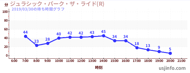 • ジュラシック・パーク・ザ・ライド(R)$B$N(B2019年03月30日の待ち時間