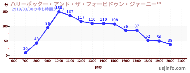 • ハリーポッター・アンド・ザ・フォービドゥン・ジャーニー™$B$N(B2019年03月30日の待ち時間