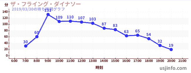 • ザ・フライング・ダイナソー$B$N(B2019年03月30日の待ち時間