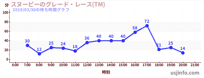 • スヌーピーのグレード・レース(TM)$B$N(B2019年03月30日の待ち時間