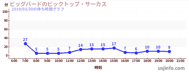 • ビッグバードのビックトップ・サーカス$B$N(B2019年03月30日の待ち時間