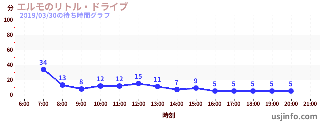 • エルモのリトル・ドライブ$B$N(B2019年03月30日の待ち時間