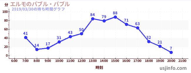 • エルモのバブル・バブル$B$N(B2019年03月30日の待ち時間