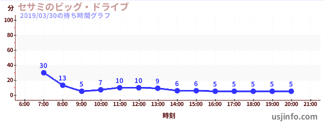 • セサミのビッグ・ドライブ$B$N(B2019年03月30日の待ち時間