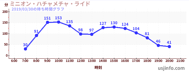 • ミニオン・ハチャメチャ・ライド$B$N(B2019年03月30日の待ち時間